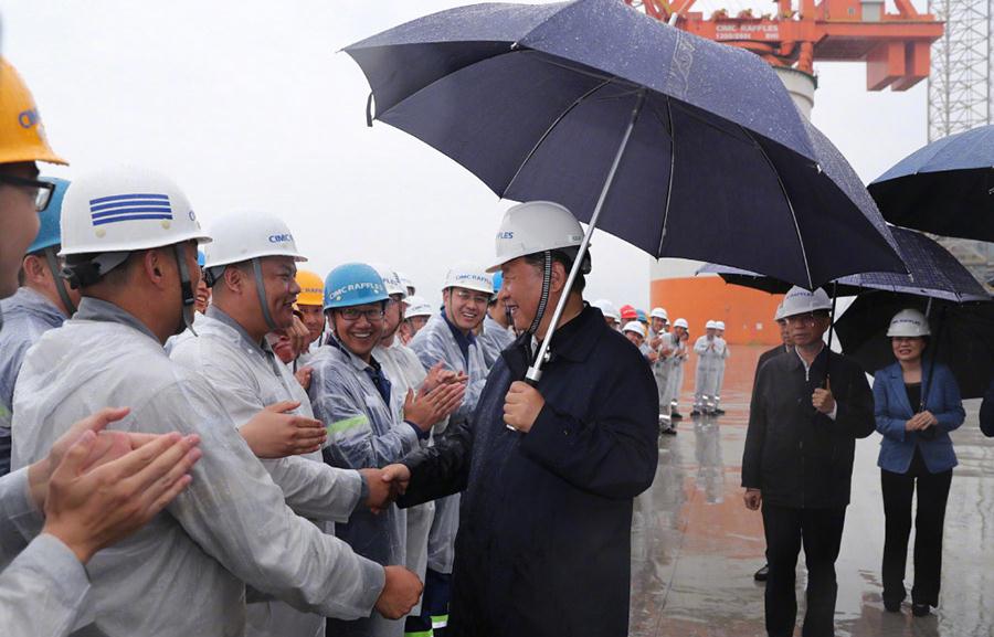 習近平冒雨考察海洋工程設備制造基地
